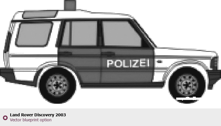 Raster blueprint of the 2003 Land Rover Discovery SUV. This free downloadable image can be used for graphic projects, digital design, and 3D modeling. The file provides accurate exterior proportions of the vehicle. Model year: 2003. Body type: SUV.