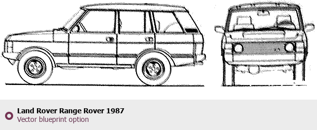 Raster blueprint of the 1987 Land Rover Range Rover SUV. This free downloadable image can be used for graphic projects, digital design, and 3D modeling. The file provides accurate exterior proportions of the vehicle. Model year: 1987. Body type: SUV.