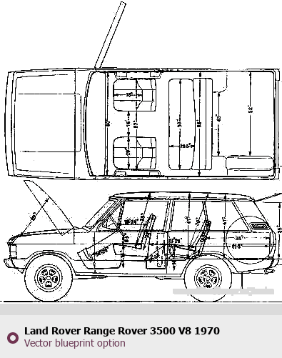 Raster blueprint of the 1970 Land Rover Range Rover 3500 V8 SUV. This free downloadable image can be used for graphic projects, digital design, and 3D modeling. The file provides accurate exterior proportions of the vehicle. Model year: 1970. Body type: SUV.