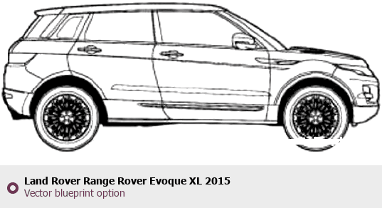 Raster blueprint of the 2015 Land Rover Range Rover Evoque XL SUV. This free downloadable image can be used for graphic projects, digital design, and 3D modeling. The file provides accurate exterior proportions of the vehicle. Model year: 2015. Body type: SUV.