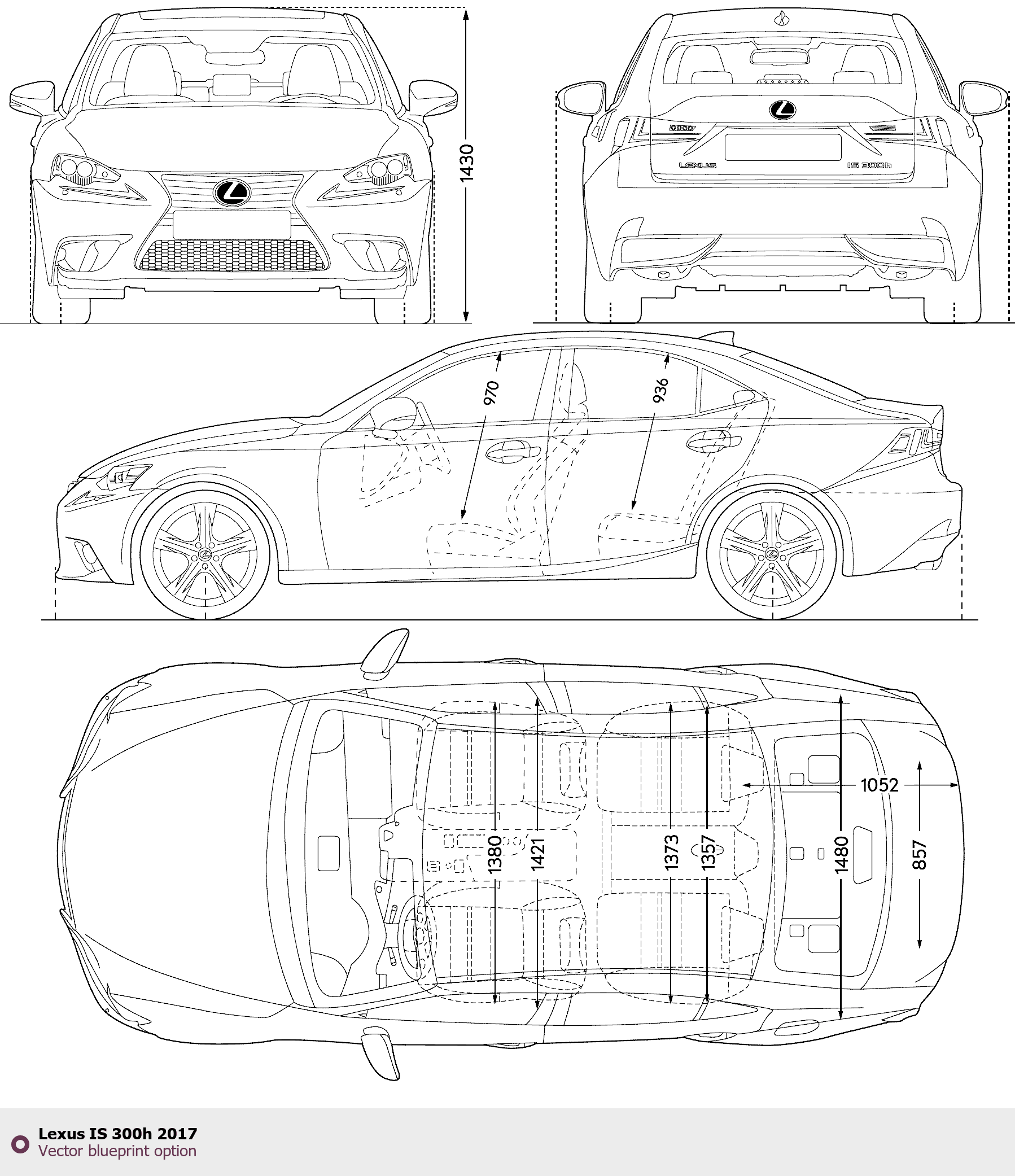 Raster blueprint of the 2017 Lexus IS 300h Tag. This free downloadable image can be used for graphic projects, digital design, and 3D modeling. The file provides accurate exterior proportions of the vehicle. Model year: 2017. Body type: Tag.