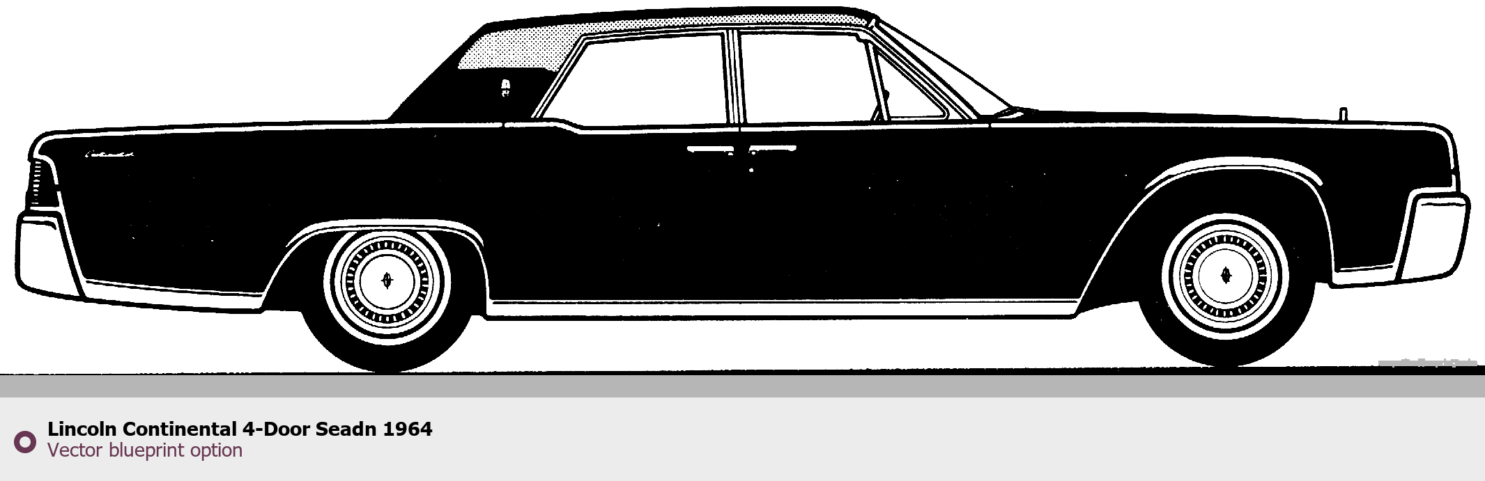Raster blueprint of the 1964 Lincoln Continental 4-Door Seadn Tag. This free downloadable image can be used for graphic projects, digital design, and 3D modeling. The file provides accurate exterior proportions of the vehicle. Model year: 1964. Body type: Tag.