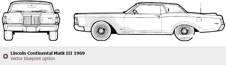Raster blueprint of the 1969 Lincoln Continental Matk III Tag. This free downloadable image can be used for graphic projects, digital design, and 3D modeling. The file provides accurate exterior proportions of the vehicle. Model year: 1969. Body type: Tag.