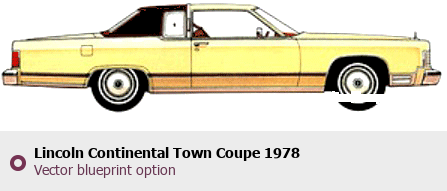 Raster blueprint of the 1978 Lincoln Continental Town Coupe Coupe. This free downloadable image can be used for graphic projects, digital design, and 3D modeling. The file provides accurate exterior proportions of the vehicle. Model year: 1978. Body type: Coupe.
