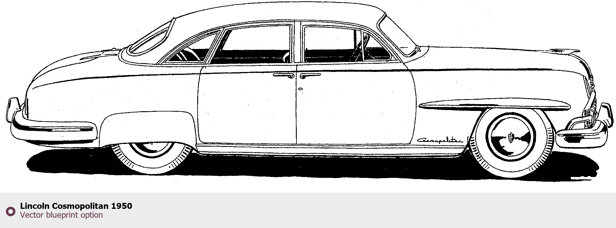 Raster blueprint of the 1950 Lincoln Cosmopolitan Tag. This free downloadable image can be used for graphic projects, digital design, and 3D modeling. The file provides accurate exterior proportions of the vehicle. Model year: 1950. Body type: Tag.