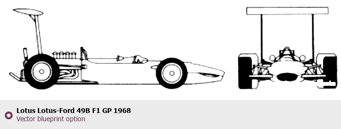 Raster blueprint of the 1968 Lotus Lotus-Ford 49B F1 GP Formula. This free downloadable image can be used for graphic projects, digital design, and 3D modeling. The file provides accurate exterior proportions of the vehicle. Model year: 1968. Body type: Formula.