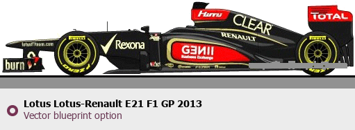 Raster blueprint of the 2013 Lotus Lotus-Renault E21 F1 GP Formula. This free downloadable image can be used for graphic projects, digital design, and 3D modeling. The file provides accurate exterior proportions of the vehicle. Model year: 2013. Body type: Formula.