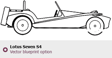 Raster blueprint of the Lotus Seven S4 Tag. This free downloadable image can be used for graphic projects, digital design, and 3D modeling. The file provides accurate exterior proportions of the vehicle. Body type: Tag.