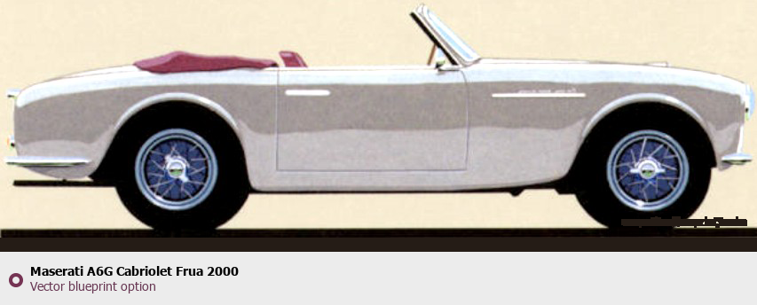 Raster blueprint of the 2000 Maserati A6G Cabriolet Frua Cabriolet. This free downloadable image can be used for graphic projects, digital design, and 3D modeling. The file provides accurate exterior proportions of the vehicle. Model year: 2000. Body type: Cabriolet.
