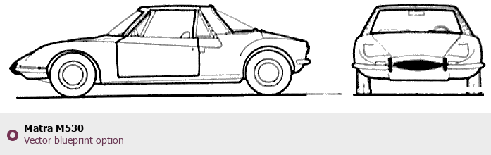 Raster blueprint of the Matra M530 Coupe. This free downloadable image can be used for graphic projects, digital design, and 3D modeling. The file provides accurate exterior proportions of the vehicle. Body type: Coupe.