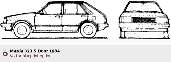 Raster blueprint of the 1984 Mazda 323 5-Door Tag. This free downloadable image can be used for graphic projects, digital design, and 3D modeling. The file provides accurate exterior proportions of the vehicle. Model year: 1984. Body type: Tag.