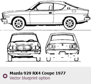 Raster blueprint of the 1977 Mazda 929 RX4 Coupe Coupe. This free downloadable image can be used for graphic projects, digital design, and 3D modeling. The file provides accurate exterior proportions of the vehicle. Model year: 1977. Body type: Coupe.