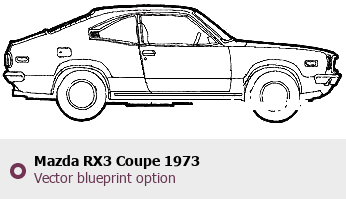 Raster blueprint of the 1973 Mazda RX3 Coupe Coupe. This free downloadable image can be used for graphic projects, digital design, and 3D modeling. The file provides accurate exterior proportions of the vehicle. Model year: 1973. Body type: Coupe.