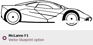 Raster blueprint of the McLaren F1 Coupe. This free downloadable image can be used for graphic projects, digital design, and 3D modeling. The file provides accurate exterior proportions of the vehicle. Body type: Coupe.