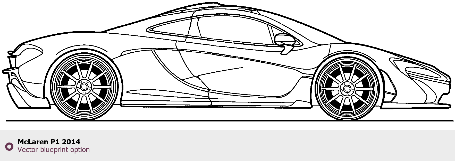 Raster blueprint of the 2014 McLaren P1 Coupe. This free downloadable image can be used for graphic projects, digital design, and 3D modeling. The file provides accurate exterior proportions of the vehicle. Model year: 2014. Body type: Coupe.