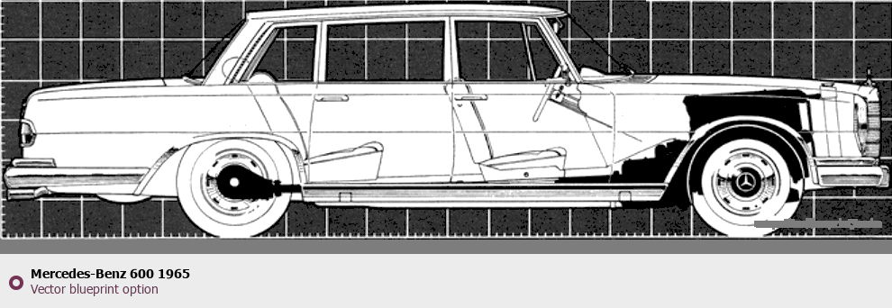Raster blueprint of the 1965 Mercedes-Benz 600 Tag. This free downloadable image can be used for graphic projects, digital design, and 3D modeling. The file provides accurate exterior proportions of the vehicle. Model year: 1965. Body type: Tag.