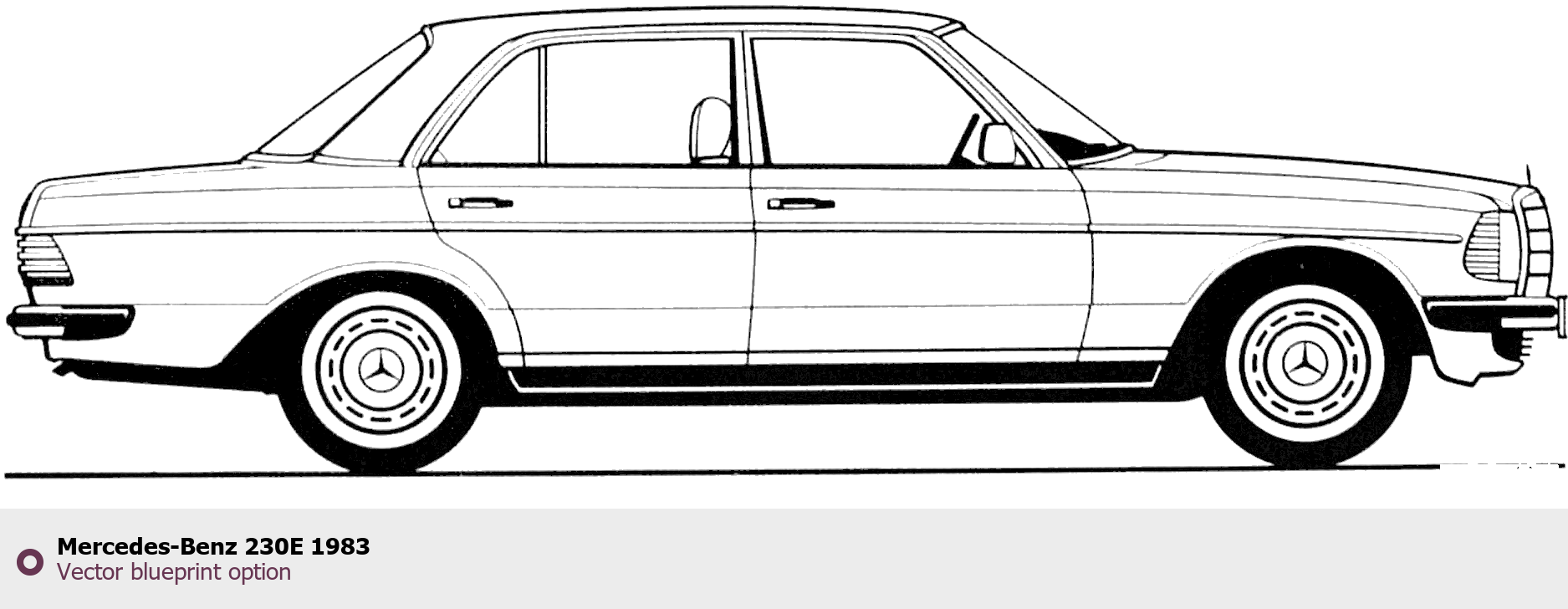 Raster blueprint of the 1983 Mercedes-Benz 230E Tag. This free downloadable image can be used for graphic projects, digital design, and 3D modeling. The file provides accurate exterior proportions of the vehicle. Model year: 1983. Body type: Tag.