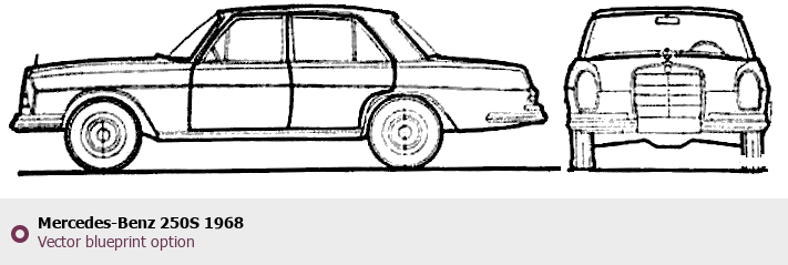 Raster blueprint of the 1968 Mercedes-Benz 250S Tag. This free downloadable image can be used for graphic projects, digital design, and 3D modeling. The file provides accurate exterior proportions of the vehicle. Model year: 1968. Body type: Tag.