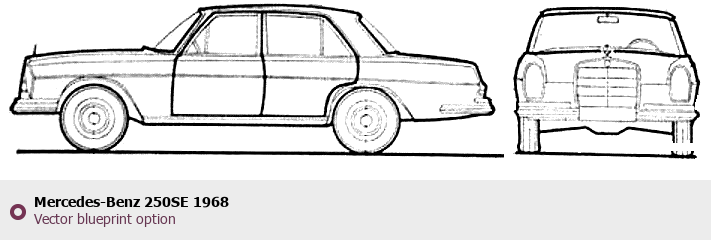 Raster blueprint of the 1968 Mercedes-Benz 250SE Tag. This free downloadable image can be used for graphic projects, digital design, and 3D modeling. The file provides accurate exterior proportions of the vehicle. Model year: 1968. Body type: Tag.