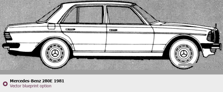 Raster blueprint of the 1981 Mercedes-Benz 280E Tag. This free downloadable image can be used for graphic projects, digital design, and 3D modeling. The file provides accurate exterior proportions of the vehicle. Model year: 1981. Body type: Tag.