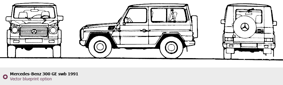 Raster blueprint of the 1991 Mercedes-Benz 300 GE swb Tag. This free downloadable image can be used for graphic projects, digital design, and 3D modeling. The file provides accurate exterior proportions of the vehicle. Model year: 1991. Body type: Tag.