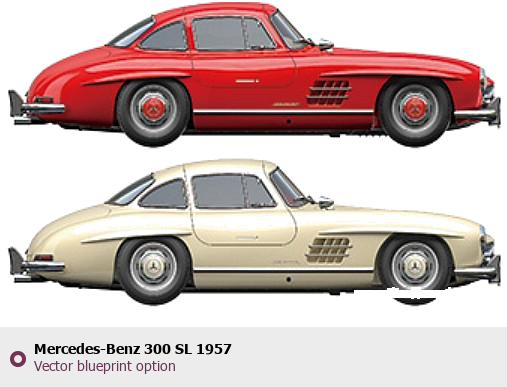 Raster blueprint of the 1957 Mercedes-Benz 300 SL Tag. This free downloadable image can be used for graphic projects, digital design, and 3D modeling. The file provides accurate exterior proportions of the vehicle. Model year: 1957. Body type: Tag.