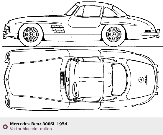Raster blueprint of the 1954 Mercedes-Benz 300SL Tag. This free downloadable image can be used for graphic projects, digital design, and 3D modeling. The file provides accurate exterior proportions of the vehicle. Model year: 1954. Body type: Tag.
