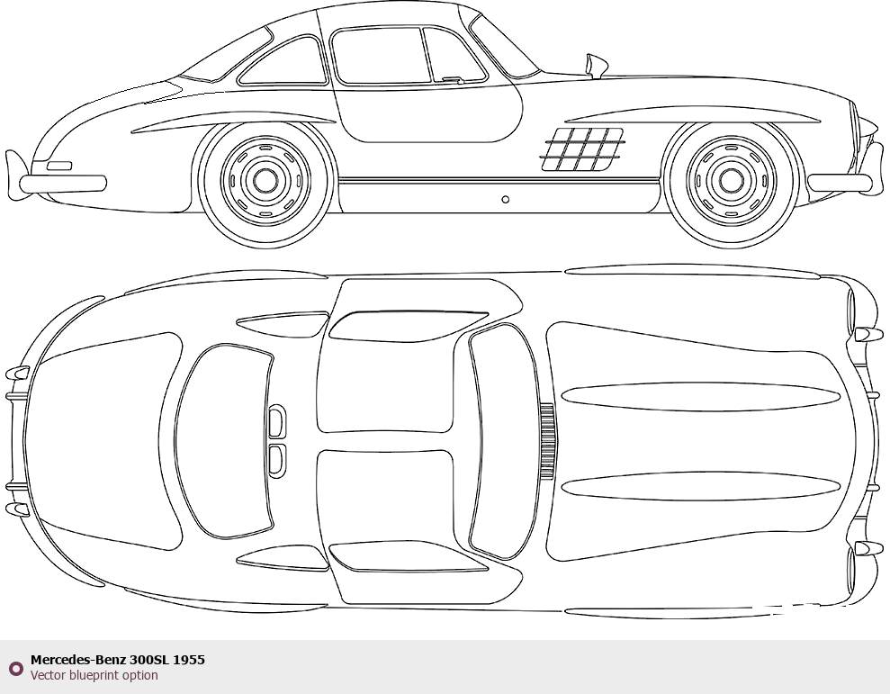 Raster blueprint of the 1955 Mercedes-Benz 300SL Tag. This free downloadable image can be used for graphic projects, digital design, and 3D modeling. The file provides accurate exterior proportions of the vehicle. Model year: 1955. Body type: Tag.