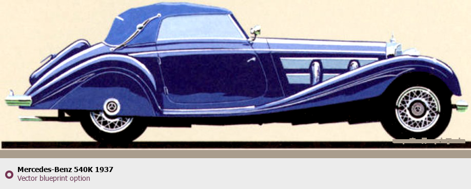 Raster blueprint of the 1937 Mercedes-Benz 540K Tag. This free downloadable image can be used for graphic projects, digital design, and 3D modeling. The file provides accurate exterior proportions of the vehicle. Model year: 1937. Body type: Tag.