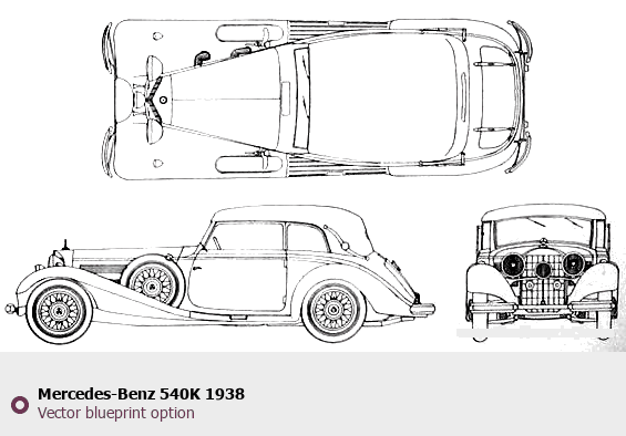 Raster blueprint of the 1938 Mercedes-Benz 540K Tag. This free downloadable image can be used for graphic projects, digital design, and 3D modeling. The file provides accurate exterior proportions of the vehicle. Model year: 1938. Body type: Tag.