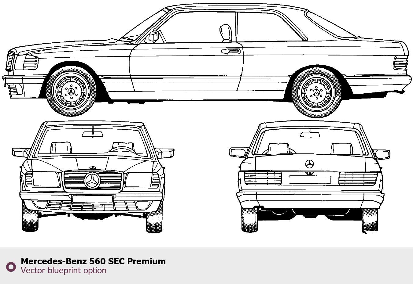 Raster blueprint of the Mercedes-Benz 560 SEC Premium Tag. This free downloadable image can be used for graphic projects, digital design, and 3D modeling. The file provides accurate exterior proportions of the vehicle. Body type: Tag.
