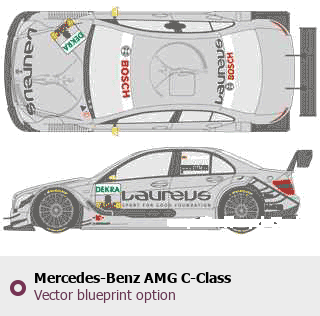 Raster blueprint of the 2010 Mercedes-Benz AMG C-Class DTM Tag. This free downloadable image can be used for graphic projects, digital design, and 3D modeling. The file provides accurate exterior proportions of the vehicle. Model year: 2010. Body type: Tag.