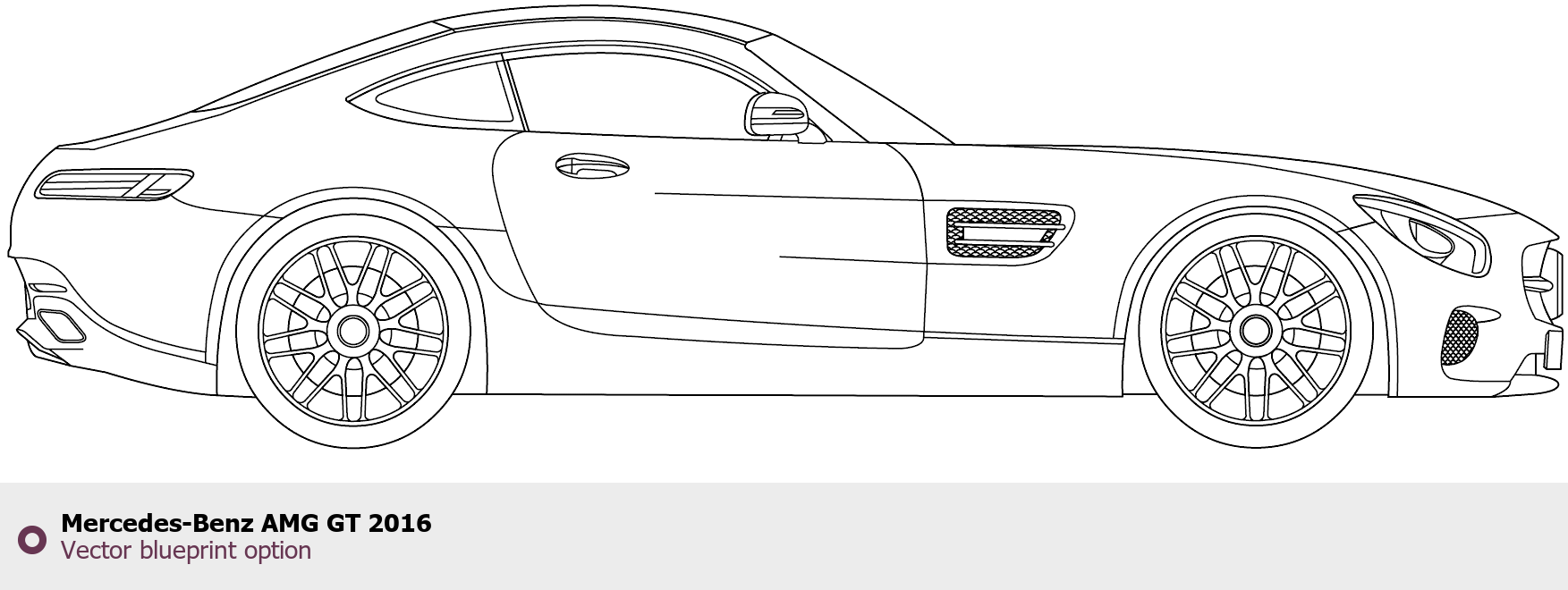Raster blueprint of the 2016 Mercedes-Benz AMG GT Tag. This free downloadable image can be used for graphic projects, digital design, and 3D modeling. The file provides accurate exterior proportions of the vehicle. Model year: 2016. Body type: Tag.