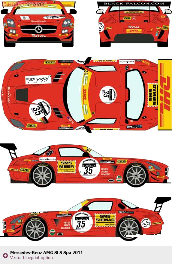 Raster blueprint of the 2011 Mercedes-Benz AMG SLS Spa Tag. This free downloadable image can be used for graphic projects, digital design, and 3D modeling. The file provides accurate exterior proportions of the vehicle. Model year: 2011. Body type: Tag.