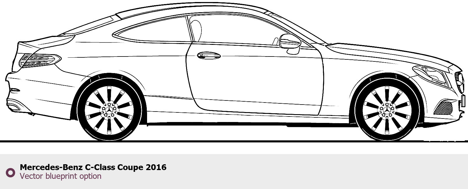 Raster blueprint of the 2016 Mercedes-Benz C-Class Coupe Coupe. This free downloadable image can be used for graphic projects, digital design, and 3D modeling. The file provides accurate exterior proportions of the vehicle. Model year: 2016. Body type: Coupe.