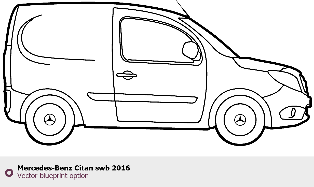 Raster blueprint of the 2016 Mercedes-Benz Citan swb Tag. This free downloadable image can be used for graphic projects, digital design, and 3D modeling. The file provides accurate exterior proportions of the vehicle. Model year: 2016. Body type: Tag.