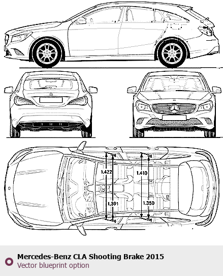 Raster blueprint of the 2015 Mercedes-Benz CLA Shooting Brake Tag. This free downloadable image can be used for graphic projects, digital design, and 3D modeling. The file provides accurate exterior proportions of the vehicle. Model year: 2015. Body type: Tag.
