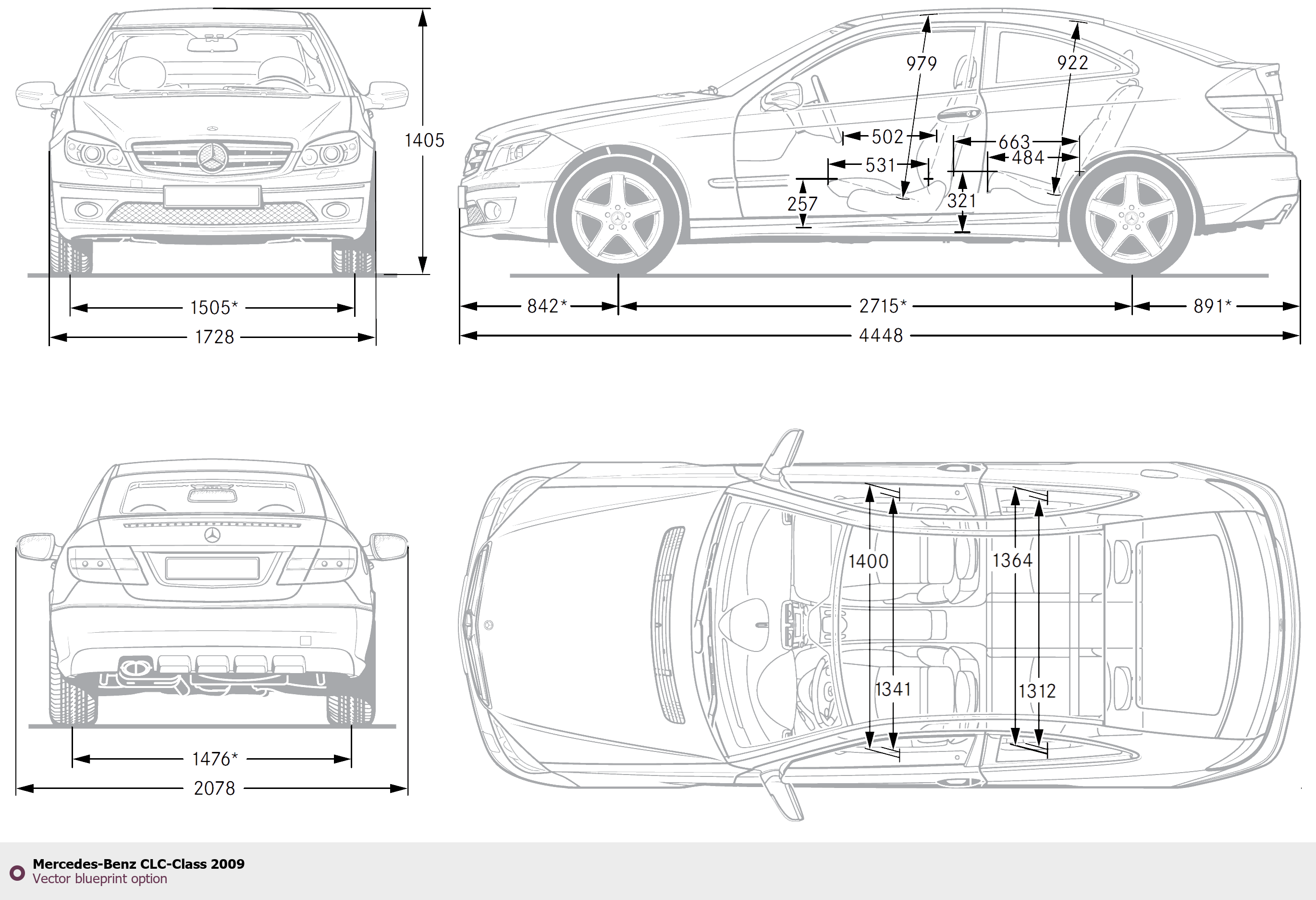 Raster blueprint of the 2009 Mercedes-Benz CLC-Class Tag. This free downloadable image can be used for graphic projects, digital design, and 3D modeling. The file provides accurate exterior proportions of the vehicle. Model year: 2009. Body type: Tag.