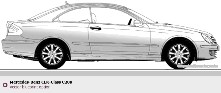 Raster blueprint of the Mercedes-Benz CLK-Class C209 Tag. This free downloadable image can be used for graphic projects, digital design, and 3D modeling. The file provides accurate exterior proportions of the vehicle. Body type: Tag.