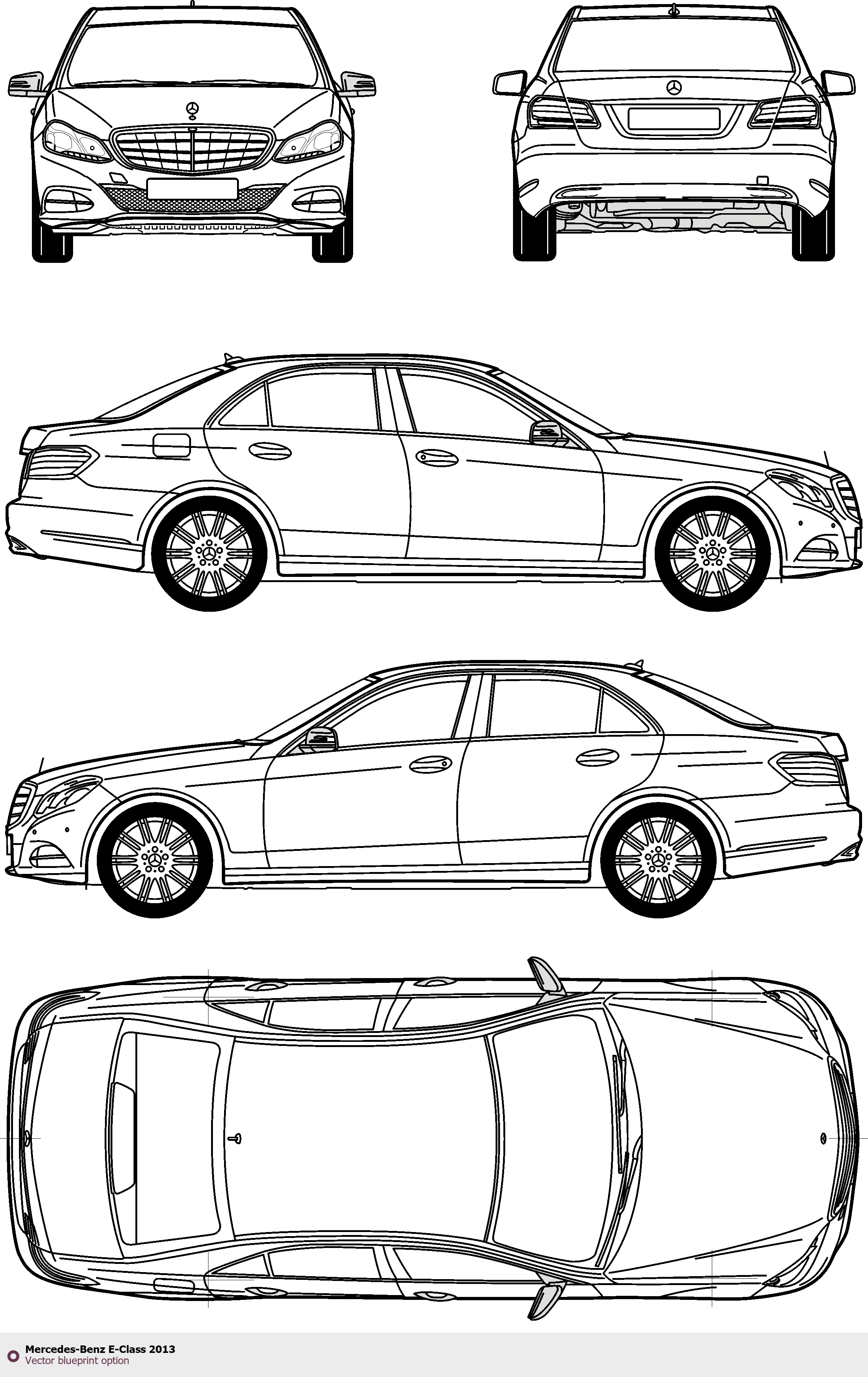 Raster blueprint of the 2013 Mercedes-Benz E-Class Tag. This free downloadable image can be used for graphic projects, digital design, and 3D modeling. The file provides accurate exterior proportions of the vehicle. Model year: 2013. Body type: Tag.