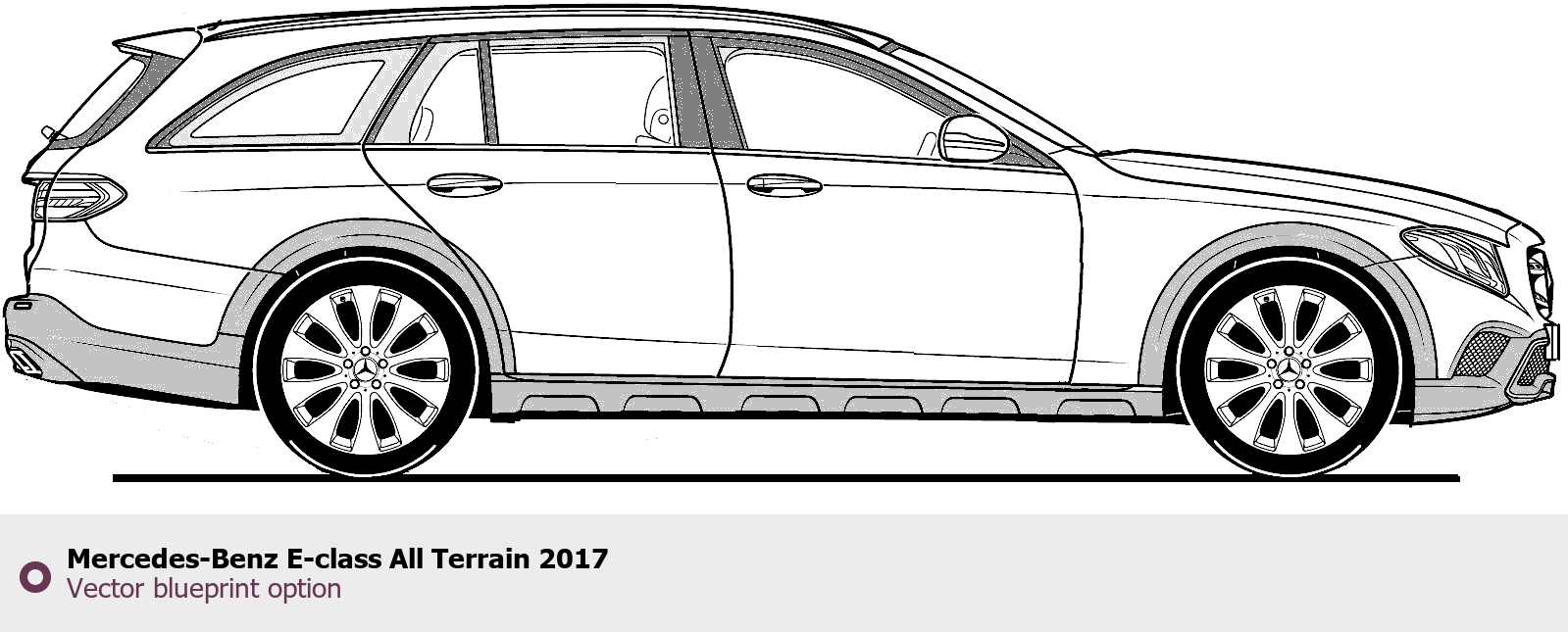 Raster blueprint of the 2017 Mercedes-Benz E-class All Terrain Tag. This free downloadable image can be used for graphic projects, digital design, and 3D modeling. The file provides accurate exterior proportions of the vehicle. Model year: 2017. Body type: Tag.