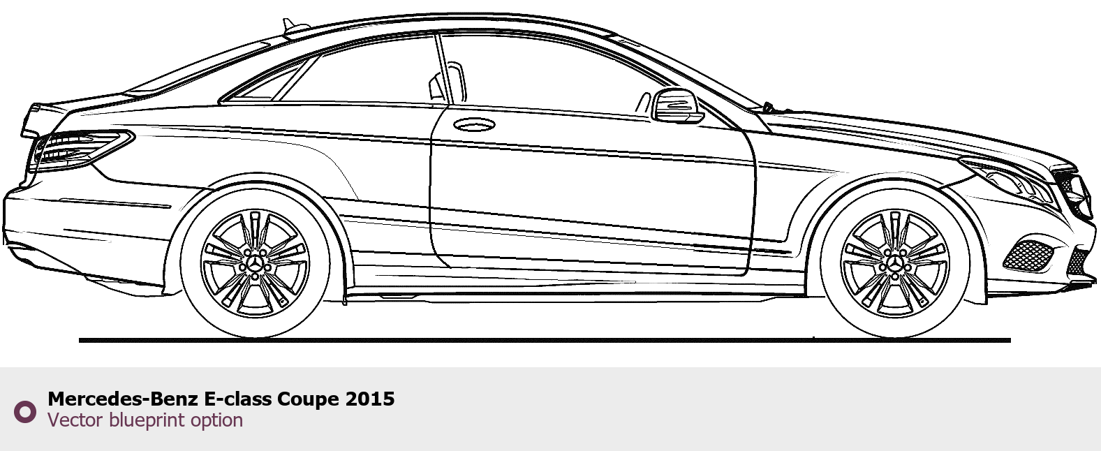 Raster blueprint of the 2015 Mercedes-Benz E-class Coupe Coupe. This free downloadable image can be used for graphic projects, digital design, and 3D modeling. The file provides accurate exterior proportions of the vehicle. Model year: 2015. Body type: Coupe.