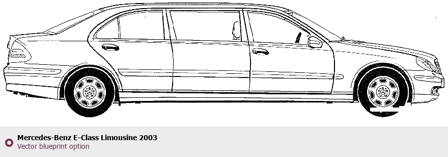 Raster blueprint of the 2003 Mercedes-Benz E-Class Limousine Limousine. This free downloadable image can be used for graphic projects, digital design, and 3D modeling. The file provides accurate exterior proportions of the vehicle. Model year: 2003. Body type: Limousine.