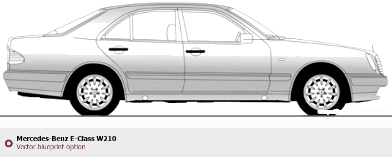 Raster blueprint of the Mercedes-Benz E-Class W210 Tag. This free downloadable image can be used for graphic projects, digital design, and 3D modeling. The file provides accurate exterior proportions of the vehicle. Body type: Tag.