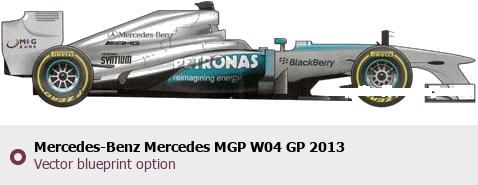 Raster blueprint of the 2013 Mercedes-Benz Mercedes MGP W04 GP Tag. This free downloadable image can be used for graphic projects, digital design, and 3D modeling. The file provides accurate exterior proportions of the vehicle. Model year: 2013. Body type: Tag.