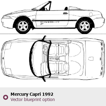Raster blueprint of the 1992 Mercury Capri Tag. This free downloadable image can be used for graphic projects, digital design, and 3D modeling. The file provides accurate exterior proportions of the vehicle. Model year: 1992. Body type: Tag.