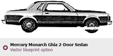 Raster blueprint of the 1980 Mercury Monarch Ghia 2-Door Sedan Sedan. This free downloadable image can be used for graphic projects, digital design, and 3D modeling. The file provides accurate exterior proportions of the vehicle. Model year: 1980. Body type: Sedan.