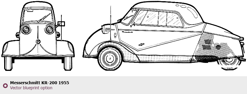 Raster blueprint of the 1955 Messerschmitt KR-200 Tag. This free downloadable image can be used for graphic projects, digital design, and 3D modeling. The file provides accurate exterior proportions of the vehicle. Model year: 1955. Body type: Tag.