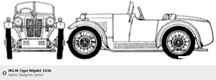 Raster blueprint of the 1936 MG M-Type Migdet Hatchback. This free downloadable image can be used for graphic projects, digital design, and 3D modeling. The file provides accurate exterior proportions of the vehicle. Model year: 1936. Body type: Hatchback.