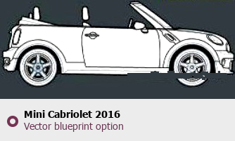 Raster blueprint of the 2016 Mini Cabriolet Hatchback. This free downloadable image can be used for graphic projects, digital design, and 3D modeling. The file provides accurate exterior proportions of the vehicle. Model year: 2016. Body type: Hatchback.
